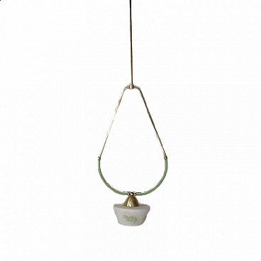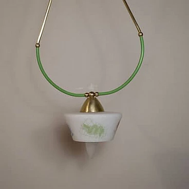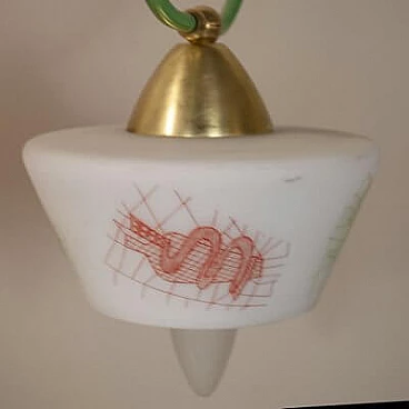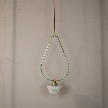 Lampadario in ottone e diffusore in vetro opalino, anni '60