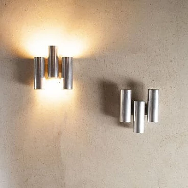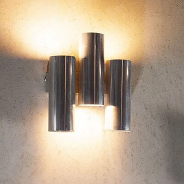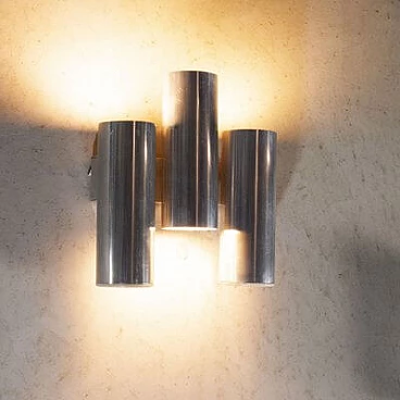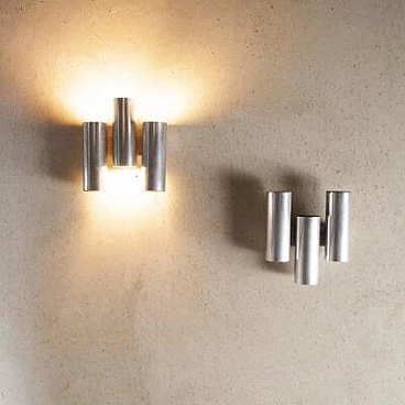 Coppia di applique in acciaio nello stile di Gaetano Sciolari, anni '70