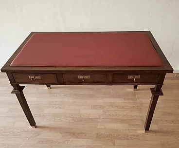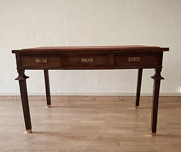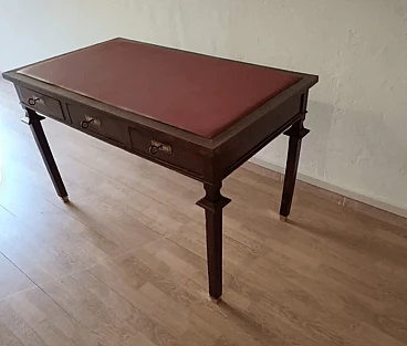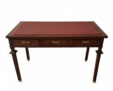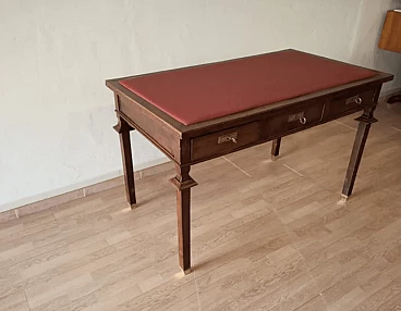 Scrivania in noce in stile Impero con piano in simil pelle, anni '20