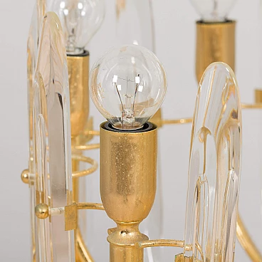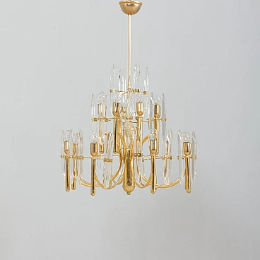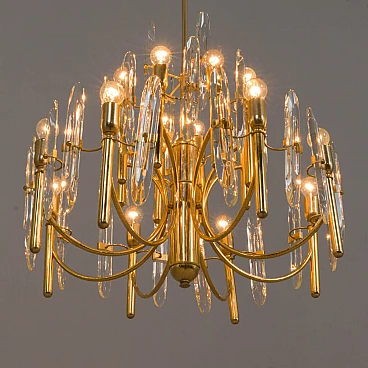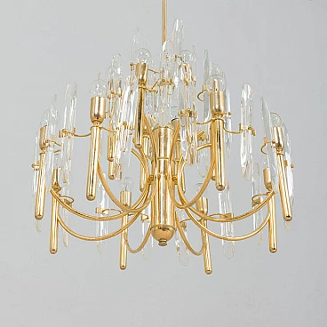 Lampadario in ottone dorato e cristallo di Gaetano Sciolari, anni '70