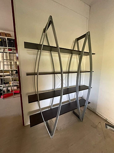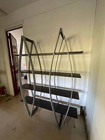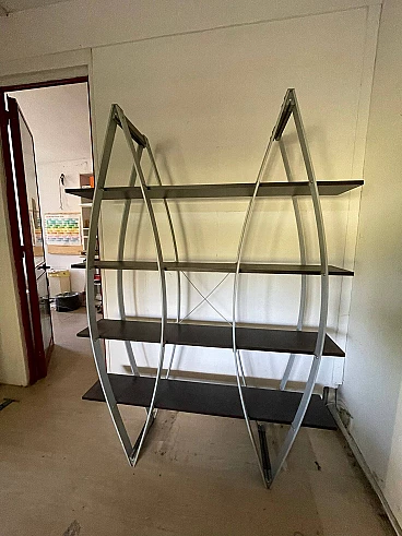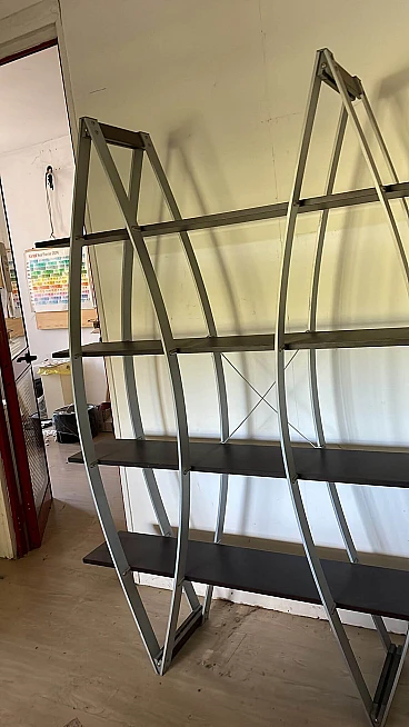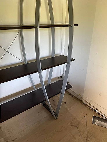 Libreria in metallo e legno, anni '80