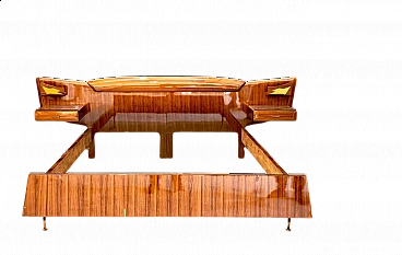 Letto matrimoniale di La Permanente Mobili Cantù, anni '50. Realizzato in palissandro, ferro e ottone.