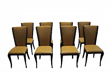 8 sedie prodotte negli anni '50 dalla Jannace & Kovacs, legno ebanizzato rivestimento in similpelle, puntali in ottone.