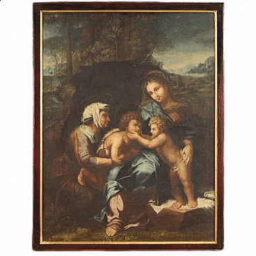 Madonna con bambino, Sant'Anna e San Giovannino, dipinto italiano olio su tela, '600