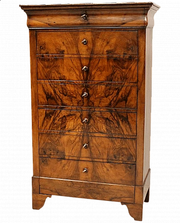 Cassettiera settimanale Luigi Filippo in noce massello, '800
