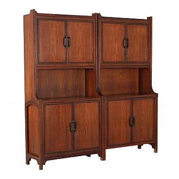 Credenza alta in noce con 4 sportelli, anni '70