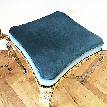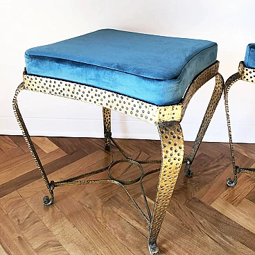 Coppia di pouf in ferro pieno dorato e velluto di Pier Luigi Colli, anni '50