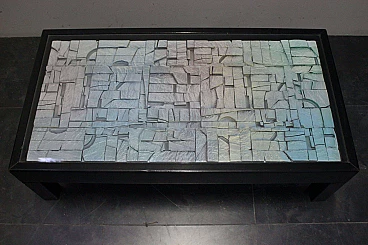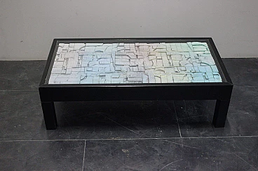 Tavolino da soggiorno Space age in legno e vetro, anni '70