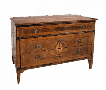 Cassettone in stile Luigi XVI in legni pregiati, '700