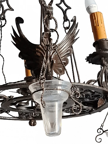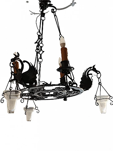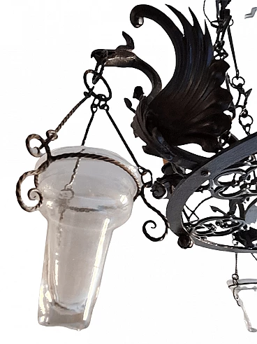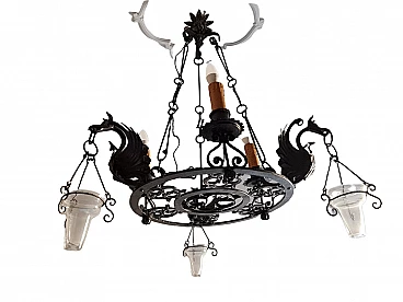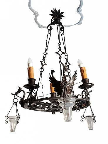 Lampadario con grifoni in metallo, '800