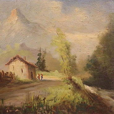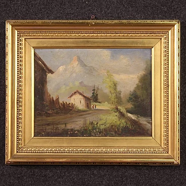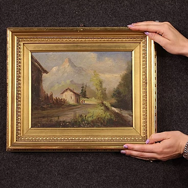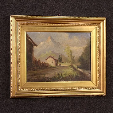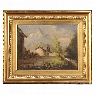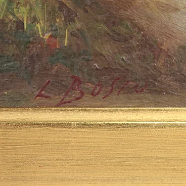 Luigi Bosio, paesaggio olio su tavoletta con cornice