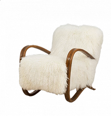 Poltrona 269 in legno e pelle di pecora di Jindrich Halaba, anni '30