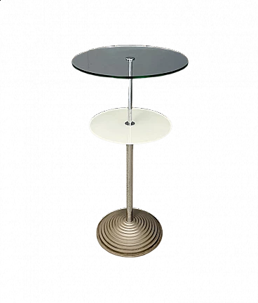 Tavolino serie Altair in metallo verniciato, vetro e vetro opalescente. E' stato disegnato da Daniela Puppa e Franco Raggi per Fontana Arte negli anni '70.