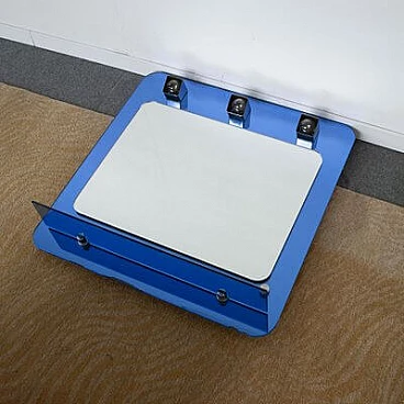 Specchio a 3 luci con mensola in vetro blu di Metalvetro, anni '70