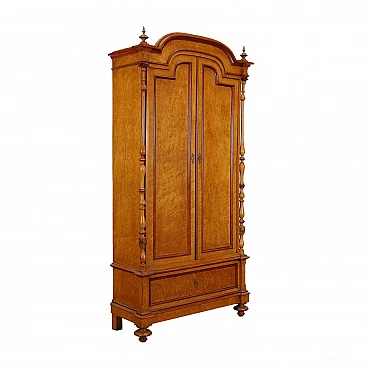 Armadio Umbertino in acero e radica di acero con coppia di ante e cassetto inquadrato da cornici sul fronte. Interni in ciliegio e ripiani in abete.