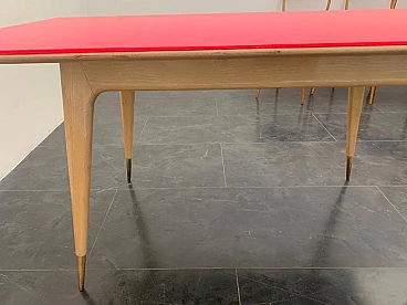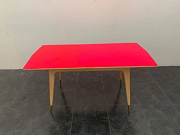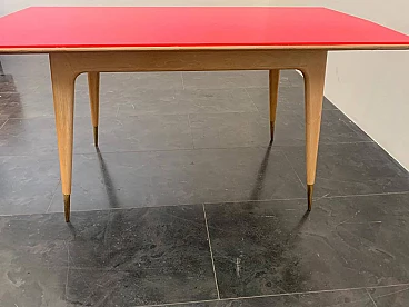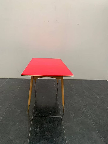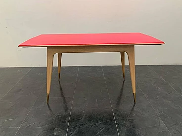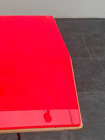 Tavolo in acero con profili tondati e piano fucsia, anni '50