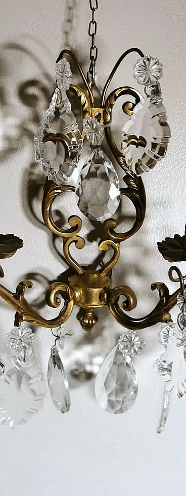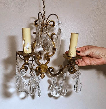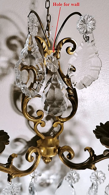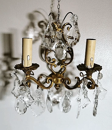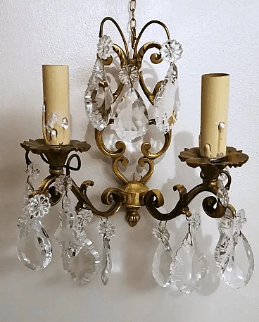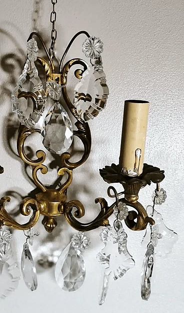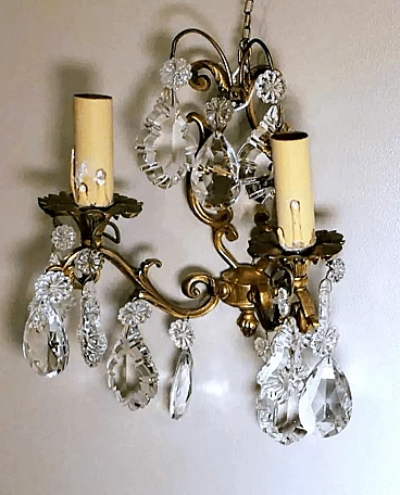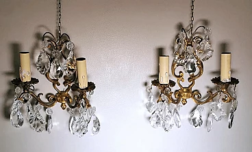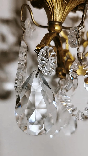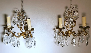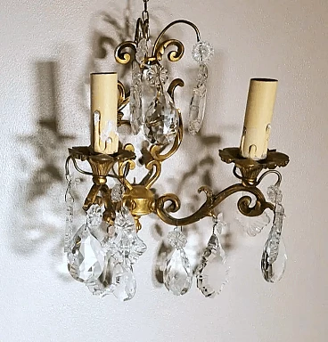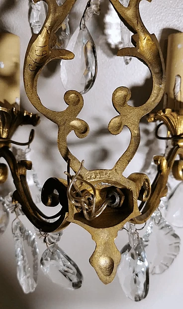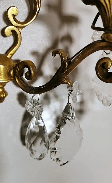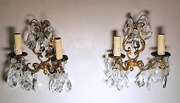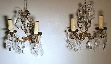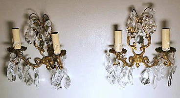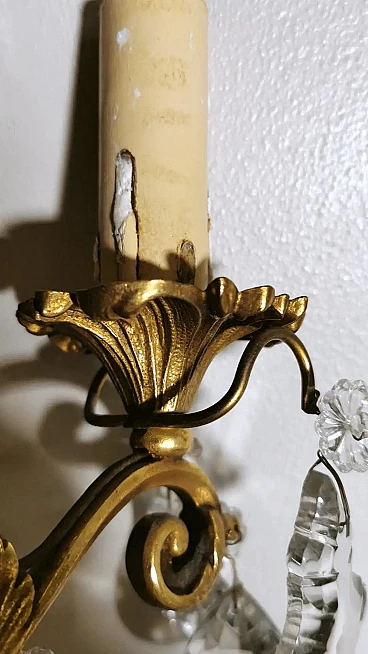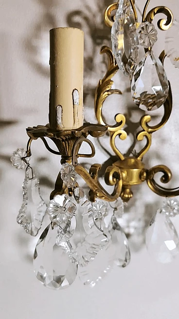Coppia di appliques Luigi XVI in ottone e cristallo, anni '50