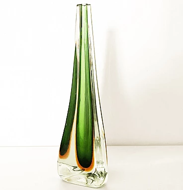 Vaso monofiore in vetro di Murano verde, anni '60