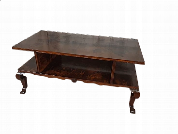 Tavolino in radica in stile Art Déco anni '50. Presenta qualche segno del tempo sulla parte superiore (vedi foto) ma è ancora in buone condizioni, consigliato comunque un restauro. Le sue ridotte dimensioni lo rendono adatto a qualsiasi tipo e stile di ambiente e può essere collocato in soggiorno o in camera da letto.