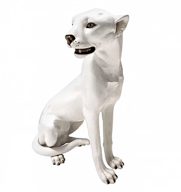 Scultura a forma di pantera in ceramica bianca, anni '60