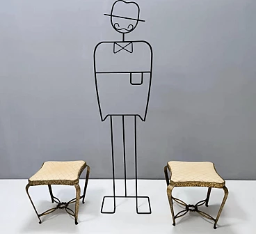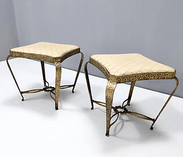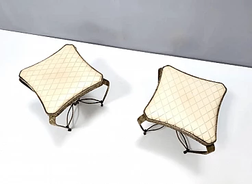 Coppia di pouf in avorio e metallo dorato di Pierluigi Colli, anni '50