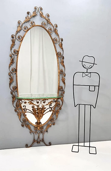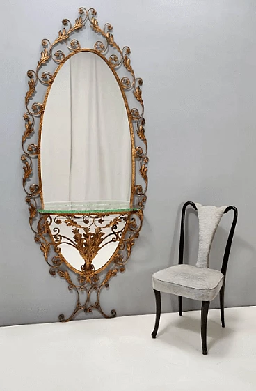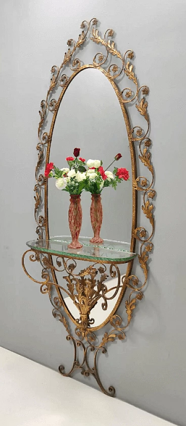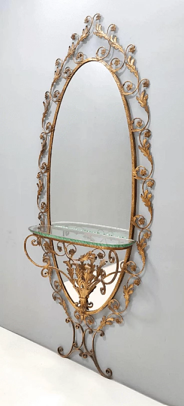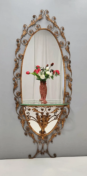 Specchio da ingresso e consolle in ottone di Pierluigi Colli, anni '60