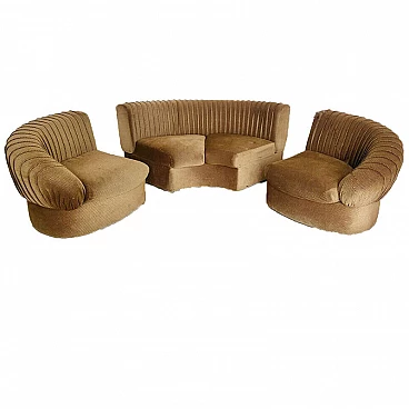 Divano modulare curvo, composto da 3 pezzi, velluto, anni '70