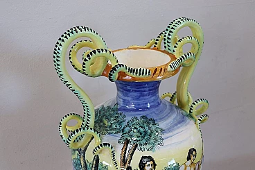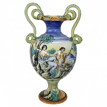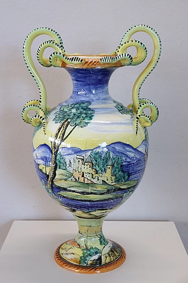 Vaso ad anfora in maiolica dipinta a mano, '800