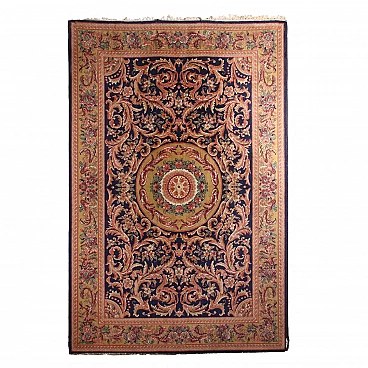 Tappeto floreale italiano in cotone e lana a nodo grosso. Fabbricazione a macchina.