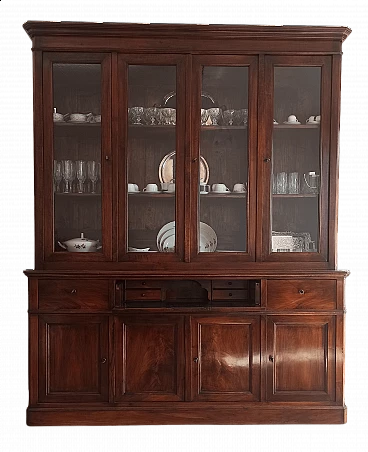 Credenza vetrina in noce con vetri soffiati, epoca '800