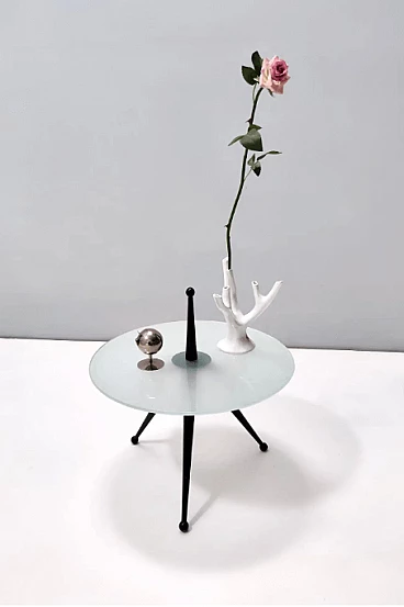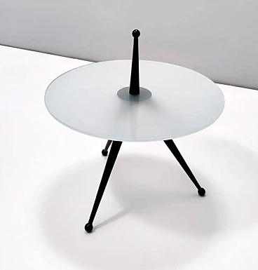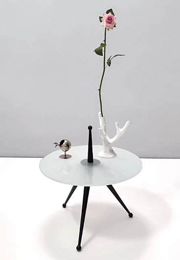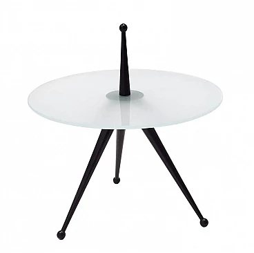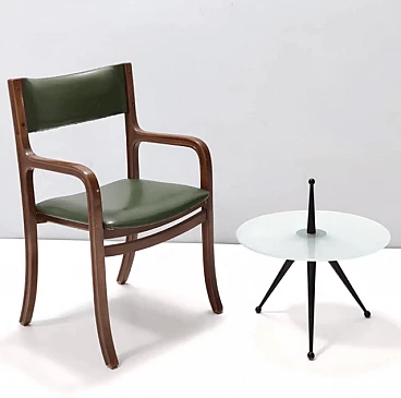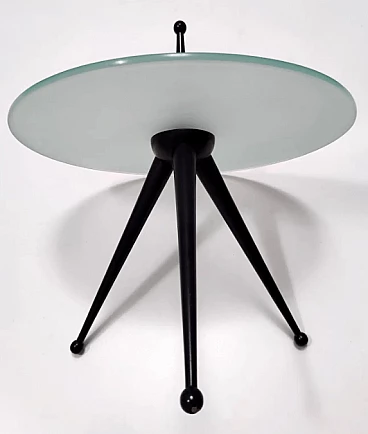 Tavolino tripode in faggio e vetro nello stile di Cesare Lacca, anni '80