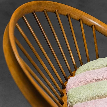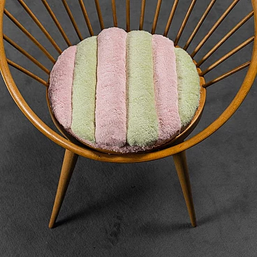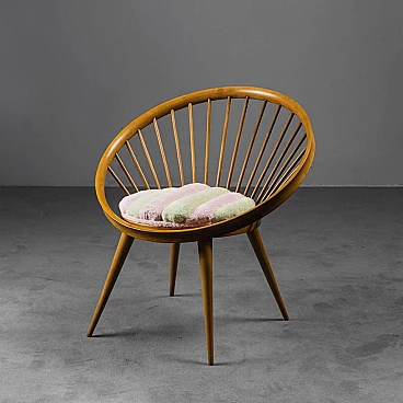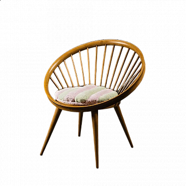 Poltrona circolare in legno con cuscino in spugna, anni '60