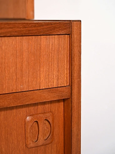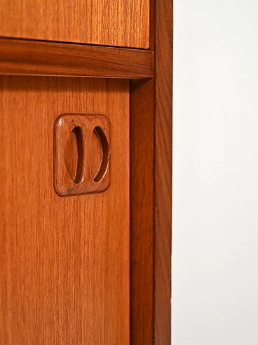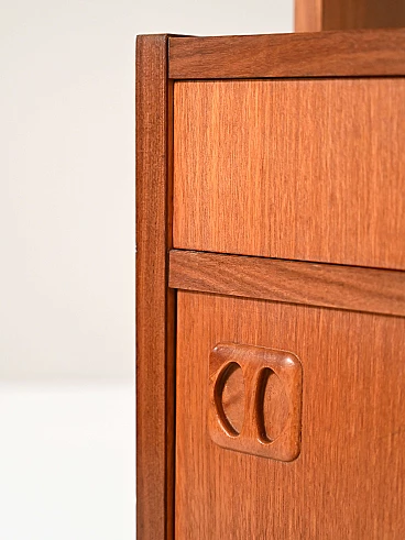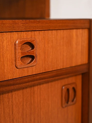 Libreria in teak con ripiani ed anta scorrevole, anni '60