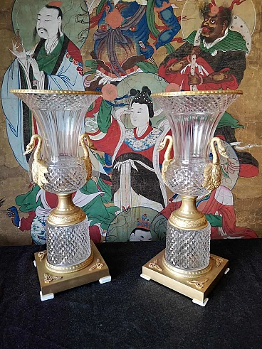 Coppia di vasi russi in cristallo e bronzo dorato, '800