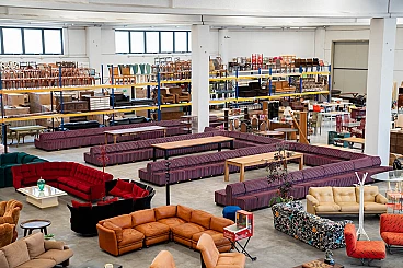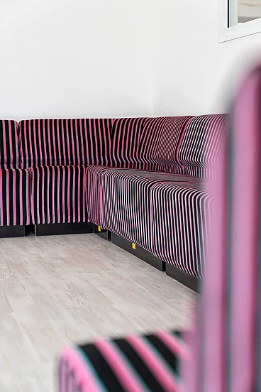Divano a righe in tessuto e plastica a 13 moduli di Cestari, anni '90