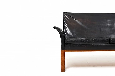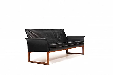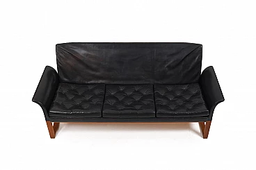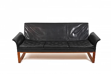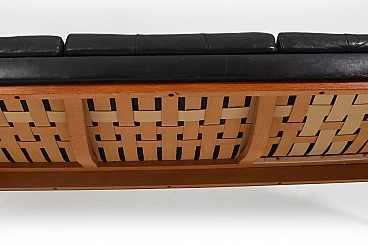 Divano in teak e pelle nera, anni '60