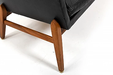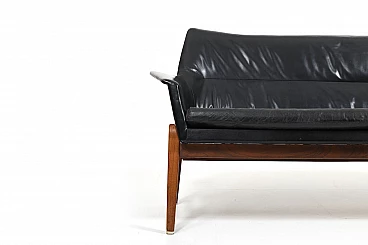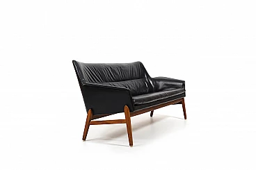Divano Wing in pelle e teak di Ib Kofod-Larsen, anni '50