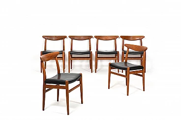 6 Sedie W2 di Wegner per C. M. Madsen, anni '50
