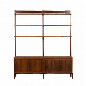 Pensile scandinavo a due vani in palissandro, prodotto in Norvegia negli anni '60. Molto elegante e funzionale, presenta due spaziosi armadietti con serratura, uno dei quali con tre piccoli cassetti/ vassoi interni. Una chiave è inclusa. L'impiallacciatura in palissandro a grana fine e l'attenzione ai dettagli evidenziano la qualità dell'artigianato scandinavo.