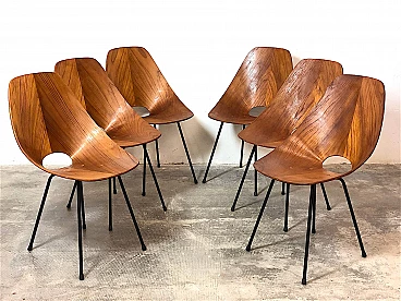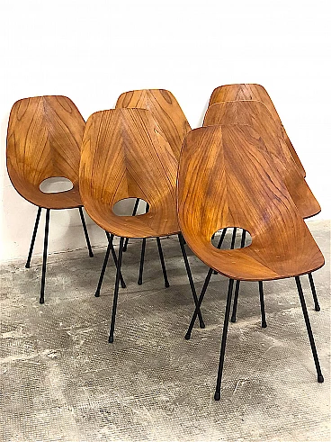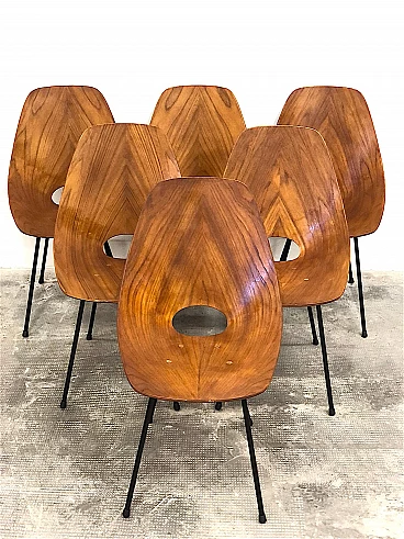 6 Sedie in compensato curvato di Vittorio Nobili, anni '50