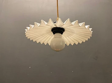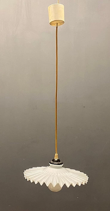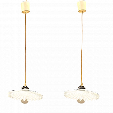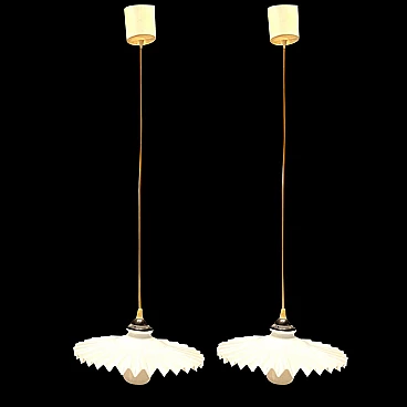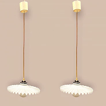Coppia di lampadari in vetro plissettato opalino, anni '60