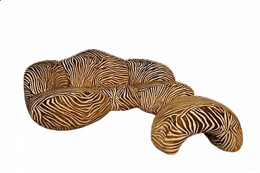 Divano Mumba con pouf zebrato di Bretz in ciniglia.