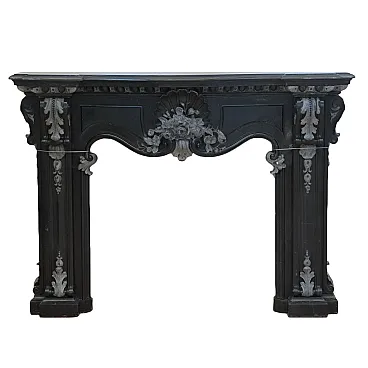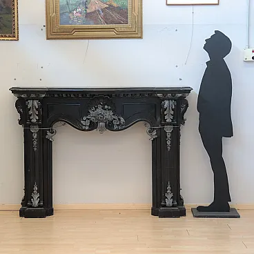 Camino scolpito in marmo nero del Belgio, '800