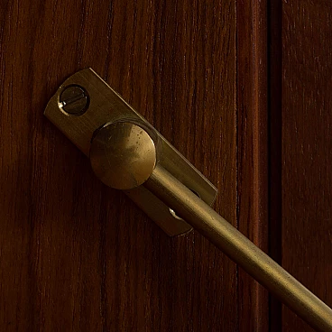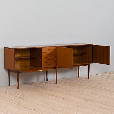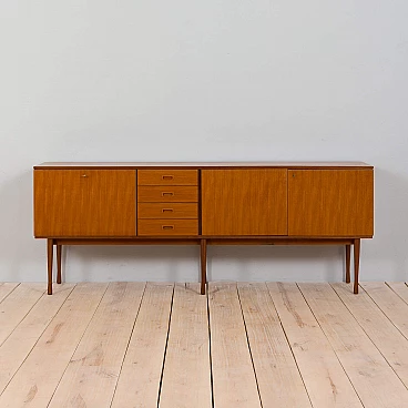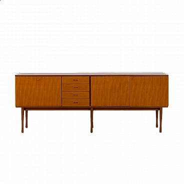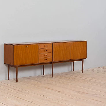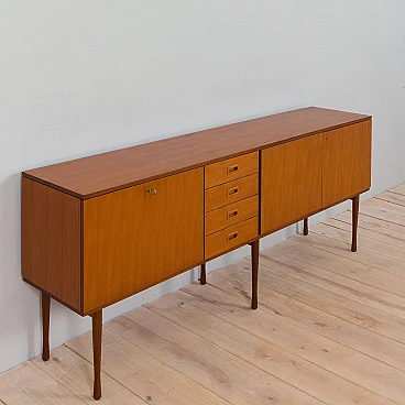 Credenza italiana extra-lunga di Ima Mobili, realizzata a Venezia negli anni '70. È stata realizzata con manifattura di alta qualità e dettagli in legno massiccio. L'etichetta del produttore è stata conservata. Presenta quattro cassetti, un mobile bar con anta a ribalta e uno a doppia anta. Entrambi gli armadietti hanno un ripiano regolabile che si può sistemare a seconda delle esigenze e si possono chiudere con una chiave originale (inclusa).