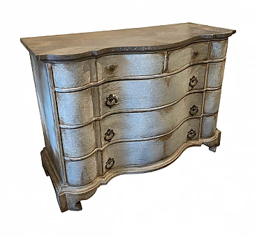 Cassettiera in legno laccata blu in condizioni originali. Il piano laccato nero gli conferisce un aspetto superbo. Realizzato nella seconda metà dell'800, presenta normali segni d'uso e d'età.