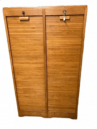 Serrandina schedario restaurata integralmente, anni '50, 2 ante in rovere. Ripiani rimovibili e regolabili, serrande scorrono perfettamente con un colpo di chiave. Perfettamente restaurata. Misure : Altezza cm 144 prof cm 35 Larghezza cm 84