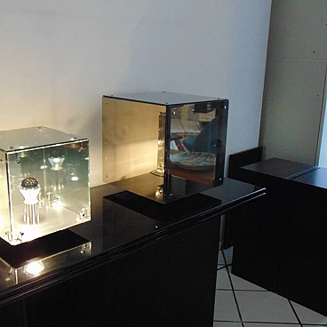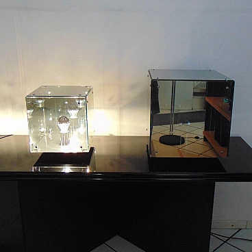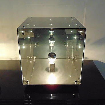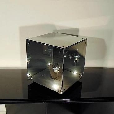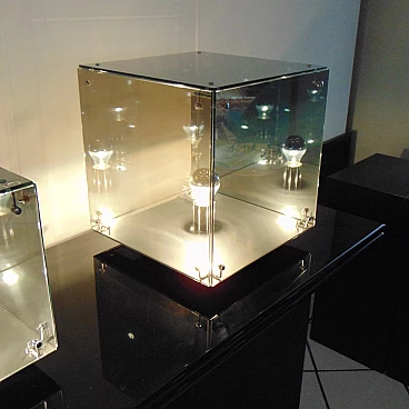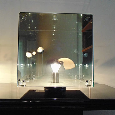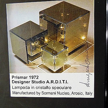 La divisione Nucleo è stata fondata per integrare la produzione Sormani con accessori. PRISMAR è una lampada da tavolo in vetro specchio “mirrorpan” della rinomata serie di lampade disegnate nei primi anni Settanta da Gruppo A.R.D.I.T.I. - Trassinelli, Gamberini, Mazzoni - per la divisione Sormani Nucleo, Italia.