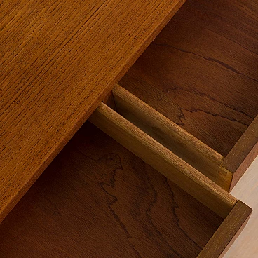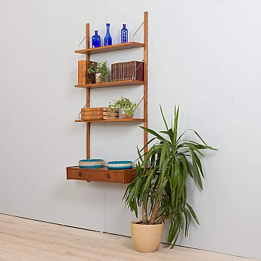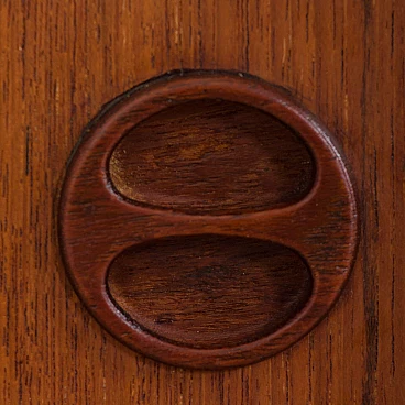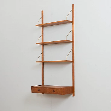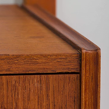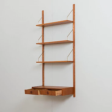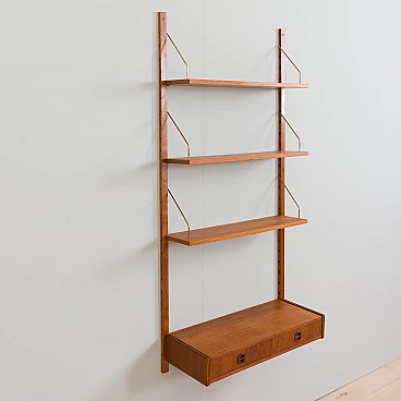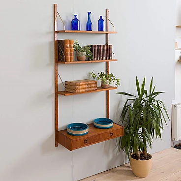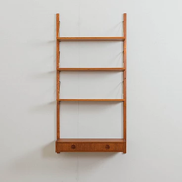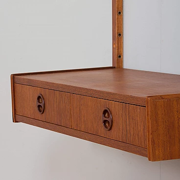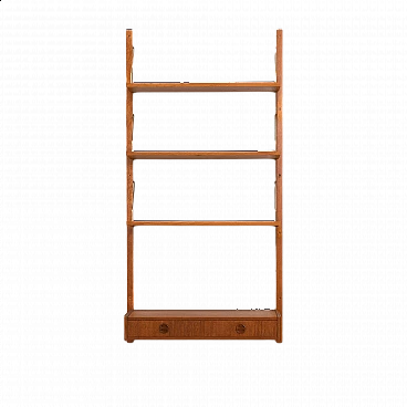 Un pensile di metà secolo in teak, progettato nello stile di Poul Cadovius o Preben Sorensen, risale agli anni '60 e presenta una consolle a due cassetti con maniglie scolpite in teak massiccio che gli conferiscono il carattere di un perfetto pensile da ingresso. Il mobile è composto da: tre mensole profonde 20 cm; una piccola consolle con due cassetti H: 10/W: 80/ P: 30 cm; altezza interna dei cassetti: 6 cm; due binari in legno lunghi 168 cm; ferramenta in ottone.