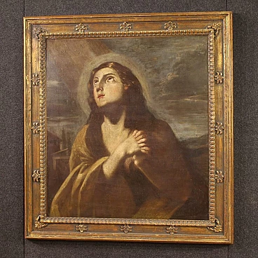 Maddalena, dipinto olio su tela con cornice dorata, tardo '600