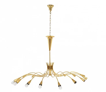 Lampadario in ottone dorato di Oscar Torlasco per Lumi, anni '50